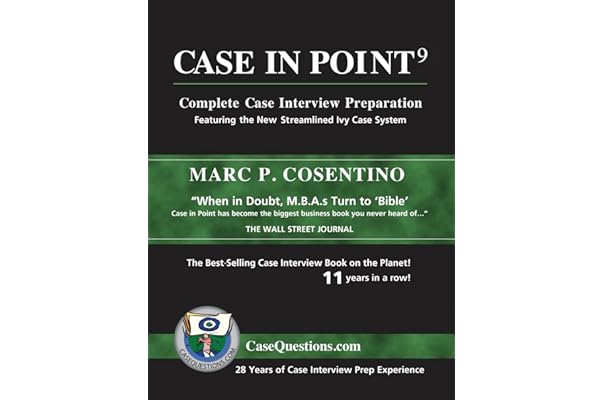 I will agree that the book has some useful commentary narrated in a jocular tone to effectively ease newbies into the tradition and nuances of the Case Interview. Case in Point by Marc Cosentino is a popular Case Interview Preparation Resource. Marc Consentinos Case-in-Point book has become outdated and is no longer a good resource for Case prep.