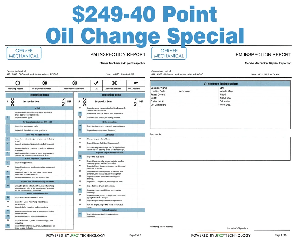Every one of our technicians has completed hours of training before servicing your truck. How much does it cost to change the oil. Includes Oil Filled to Capacity Oil Filters Fuel Filters Fluid Level.